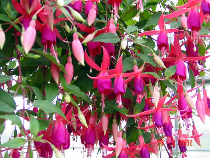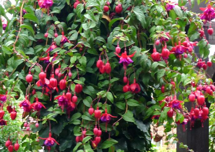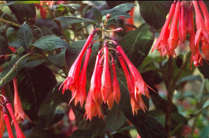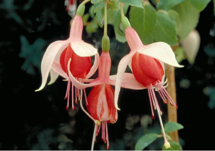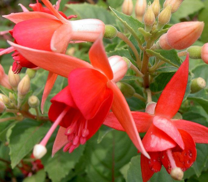Diese Tryphylla (dreiblättrig) Sorte, auch traubenblütig genannt, gehört zu einer Gruppe Fuchsien die mehr Wärme und Sonne vertragen. Wuchs aufrecht, Jungpflanzen sollten entspitzt werden, um einen schönen buschigen Wuchs zu erreichen. Sehr reich blühend bei ausreichender Düngung ohne Blühpausen. Sehr gute Beet- und Kübelpflanze. 40-60 cm Höhe erreichend. Auch für Stämme geeignet.