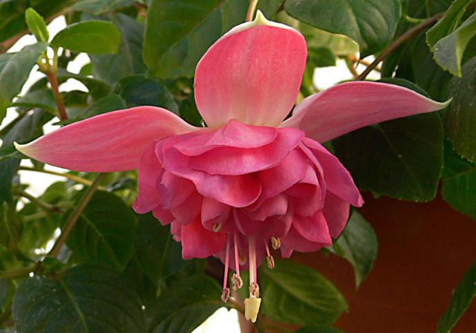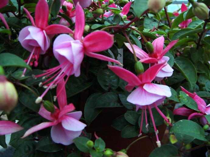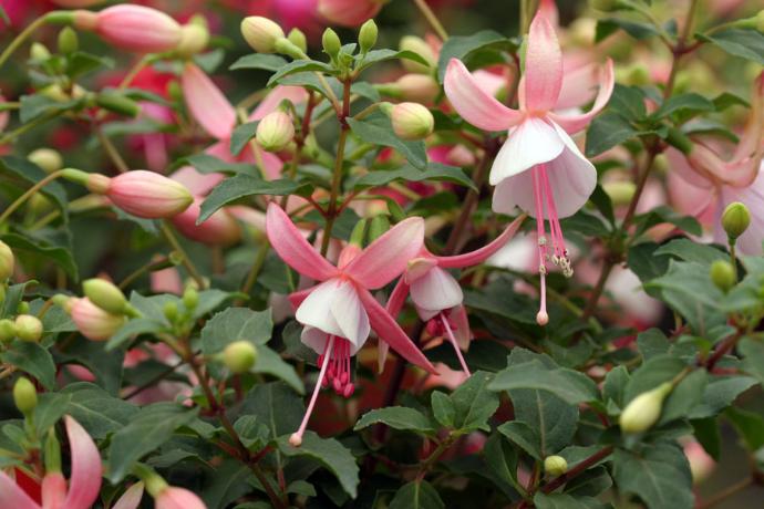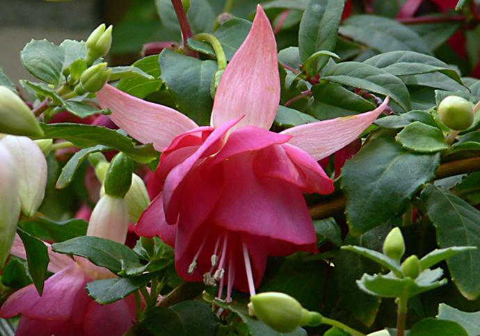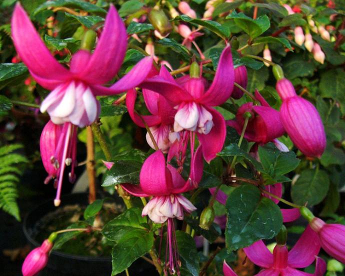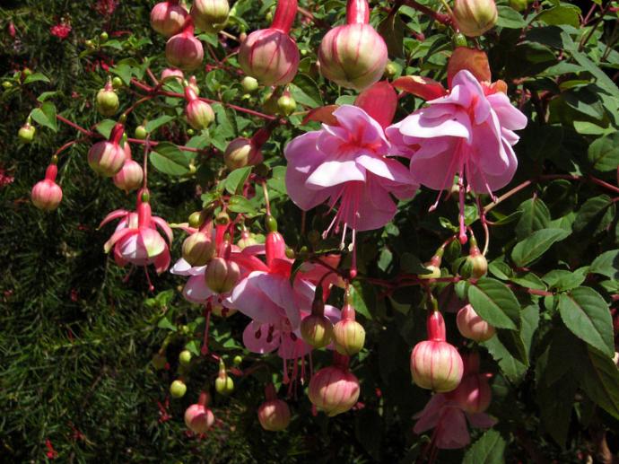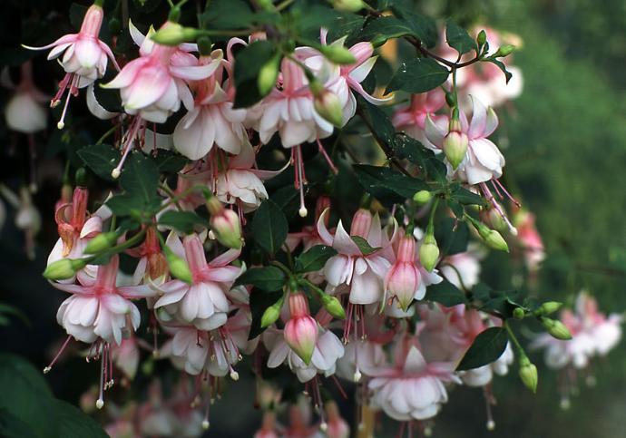 Wuchs gut verzweigend, mittelgroßes Laub. Sehr reich blühend bei ausreichender Düngung ohne Blühpause. Eine der schönsten rosa blühenden Fuchsien. Geeignet für Balkonkästen, Büsche, mittelgroße Kübel und Stämme. Verträgt Sonne an nicht zu heißem Standort, mit schattiertem Wurzelballen.