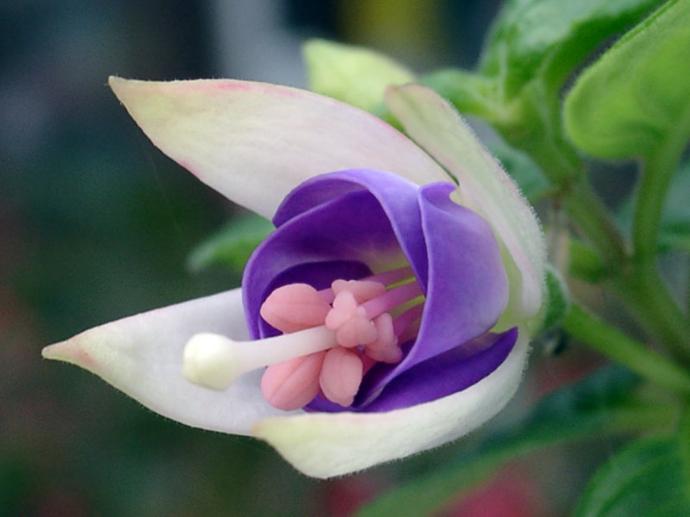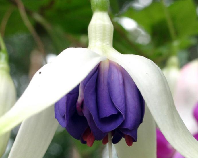 Ein unvergleichbares Blau des Röckchens (Korolle) mit den rosa Staubfäden macht diese Fuchsie zu einem Renner. Im Verblühen wechselt die Farbe ins Violette. Wuchs aufrecht. Um einen buschigen Aufbau zu erzielen, sollten Jungpflanzen entspitzt werden. Geeignet für Büsche, mittelgroße Kübel und Hochstämme.
