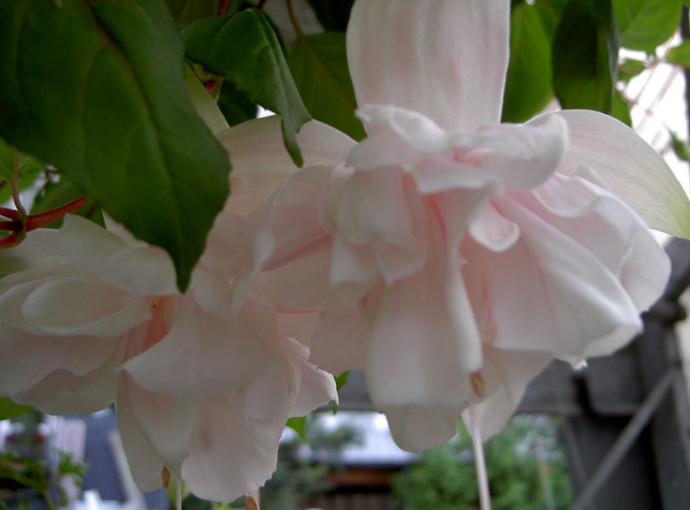 Weiße große gefüllte Blüten, am Tubus und am oberen Sepalenbereich zartrosa, sehr lange Sepalen. Kräftiger Wuchs, entwickelt sich allein zu großen Büschen.
