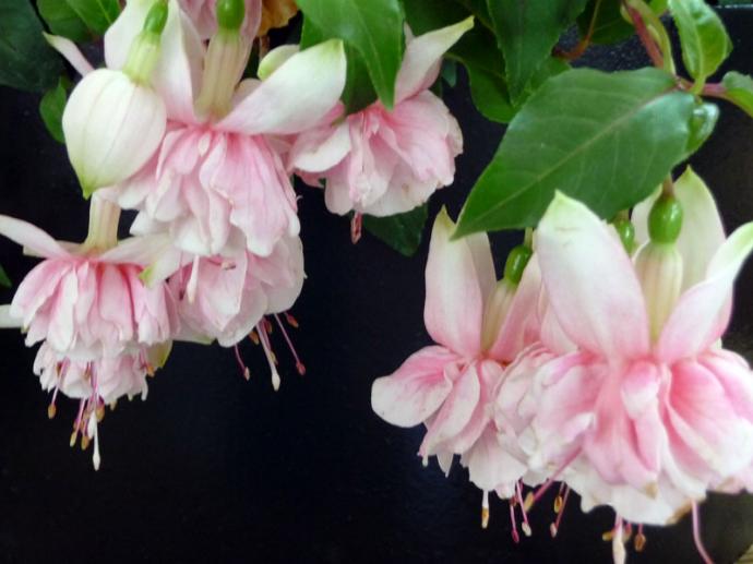 Wuchs gut verzweigt, überhängend. Das mittelgroße, dichte und gesunde Laub hat einen leichten bronce Ton. Die großen gefüllten Blüten mit ihren zarten Rosatönen sind etwas Beson-deres im Fuchsiensortiment. Geeignet für Busch, Balkon und Ampeln.