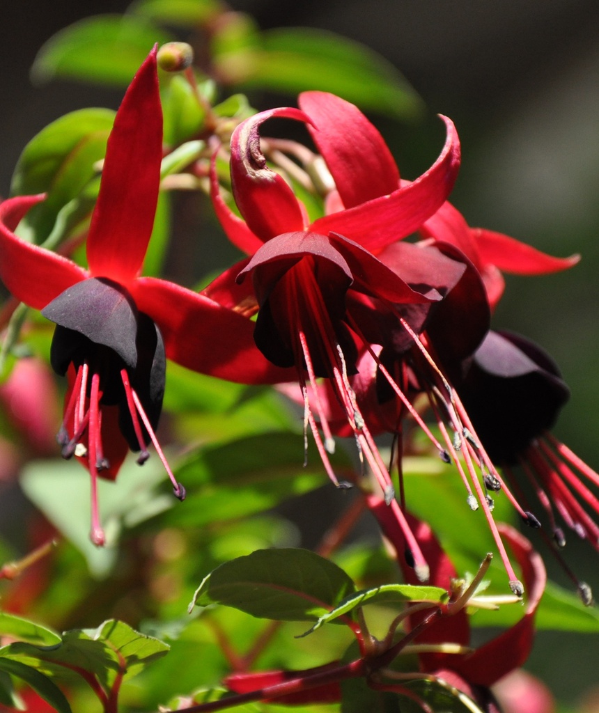 Unter der Züchternummer 06/ 12 erhielt ihr Züchter Wolfram Götz für diese Fuchsien-Neuzüchtung auf der Bundesgartenschau 2009 in Schwerin eine Silbermedaille. Seit 2009 habe ich diese Fuchsie kultiviert und ihre Eigenschaften kennengelernt. Im Gegensatz zu den vielen Götzsorten, die kurz und buschig als Beetpflanzen bekannt sind, wächst diese Fuchsie aufrechter und ist darum für Stämme und große Büsche besonders geeignet. Die überreich erscheinenden Blüten setzen Früchte an. Diese sollten entfernt werden, um eine durchgehende Blütezeit zu erzielen. Staunässe sollte unbedingt verhindert werden. Als ältere Pflanze, gut verzweigt ist sie aufgrund ihrer Farbe und des verzweigten Habitus eine der schönsten Fuchsien.