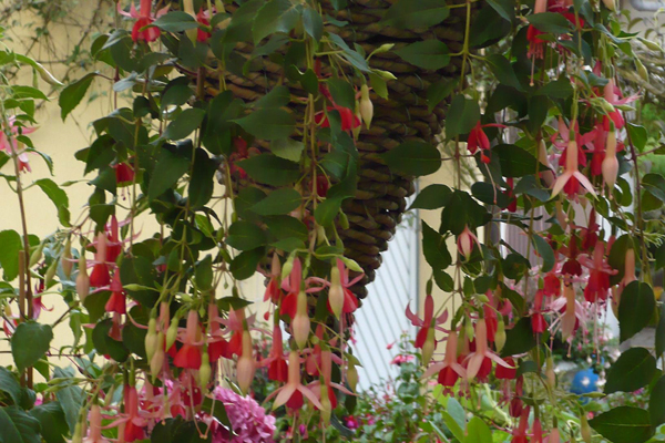 Es sind die alten Sorten, die mich immer wieder aufs Neue begeistern, sie sind robust, kaum krankheitsanfällig und dankbare Zeitgenossen .Eine große Ampel bepflanzt mit 5 bis 7 Jungpflanzen von 'Balkonkönigin' wird sehr rasch zu einem blühenden Wasserfall, genau so fallen die Zweige über den Topfrand. Diese Fuchsie dankt einer guten Pflege mit einem überreichen Blütenflor. Wir haben es Spezial-Fuchsiengärtnereien und Fuchsienfreunden zu verdanken, das es diese herrlichen alten Sorten immer noch gibt. (Eltern leider unbekannt)