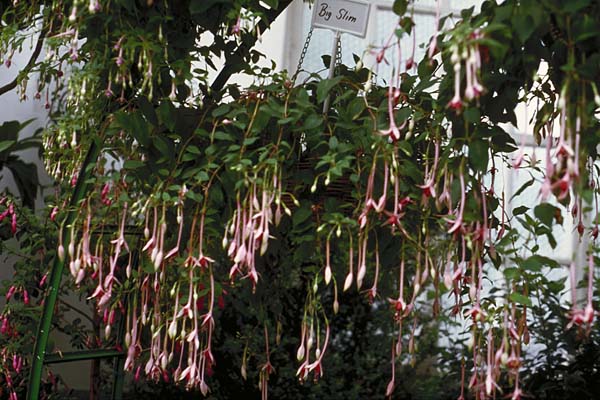 'Big Slim' trägt einen passenden Namen (große Schlanke),haben doch die Blüten einen sehr schlanken,langen Tubus. Sie können bis zu 14cm lang werden. Sie beginnt fürh zu blühen und erfreut die ganze Saison mit einem Blütenvorhang. Sie ist leicht zu halten,verzweigt allerdings nicht gerne spotan,sondern muß entspitzt werden. Besonders geeignet als Bäumchen im Stil einer Trauerweide. Sie steht gerne im gefilterten Licht,verträgt aber auch einen Platz an der Sonne.