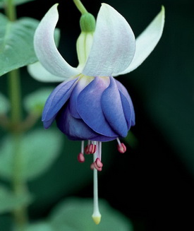 Ein unvergleichbares Blau des Röckchens (Korolle) mit den rosa Staubfäden macht diese Fuchsie zu einem Renner. Im Verblühen wechselt die Farbe ins Violette. Wuchs aufrecht. Um einen buschigen Aufbau zu erzielen, sollten Jungpflanzen entspitzt werden. Geeignet für Büsche, mittelgroße Kübel und Hochstämme.
