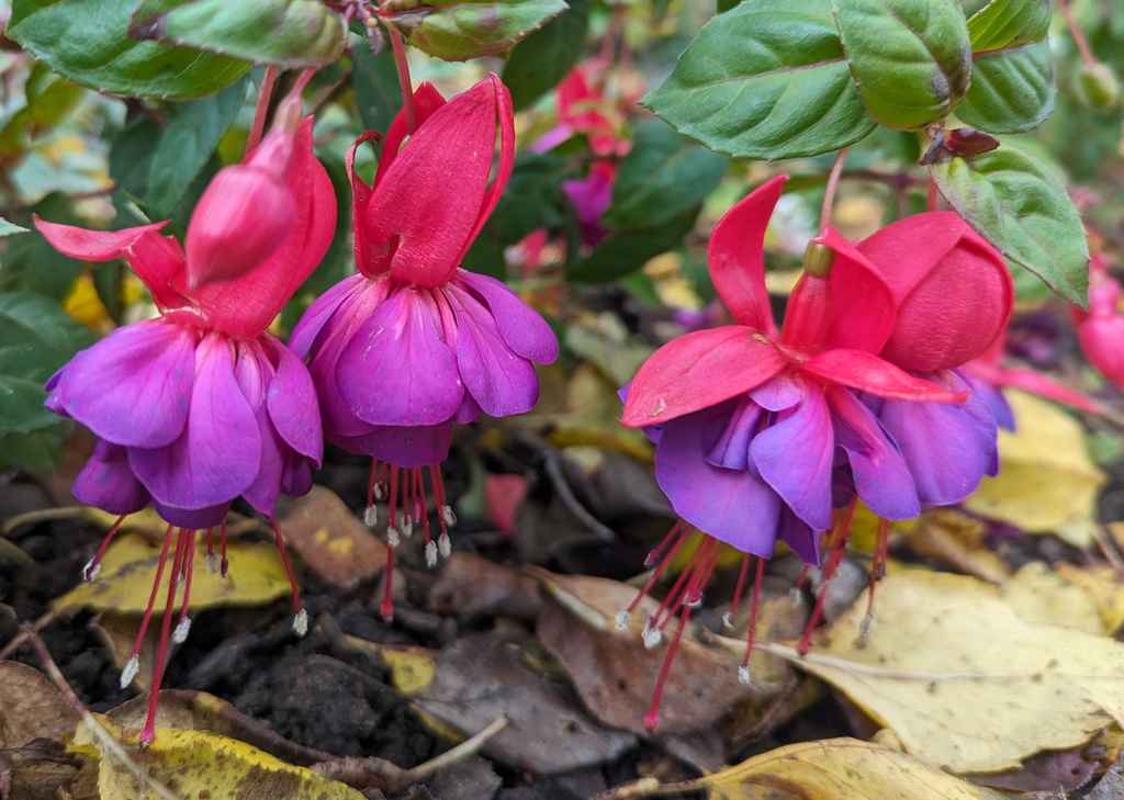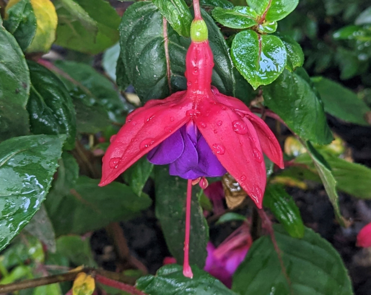 'Blue Gown' zählt zu den winterharten Fuchsien. Siehe dazu Broschüre der DFG "winterharte Fuchsien". Mit ihren dick gefüllten und großen Blüten ist sie schon etwas Besonderes unter den Winterharten. Die Blüten und wohlgeformten Knospen kommen über dem, eher fein wirkenden, Laub sehr gut zur Geltung. Sie kann ausgepflanzt eine Höhe von 80 - 90 cm erreichen.