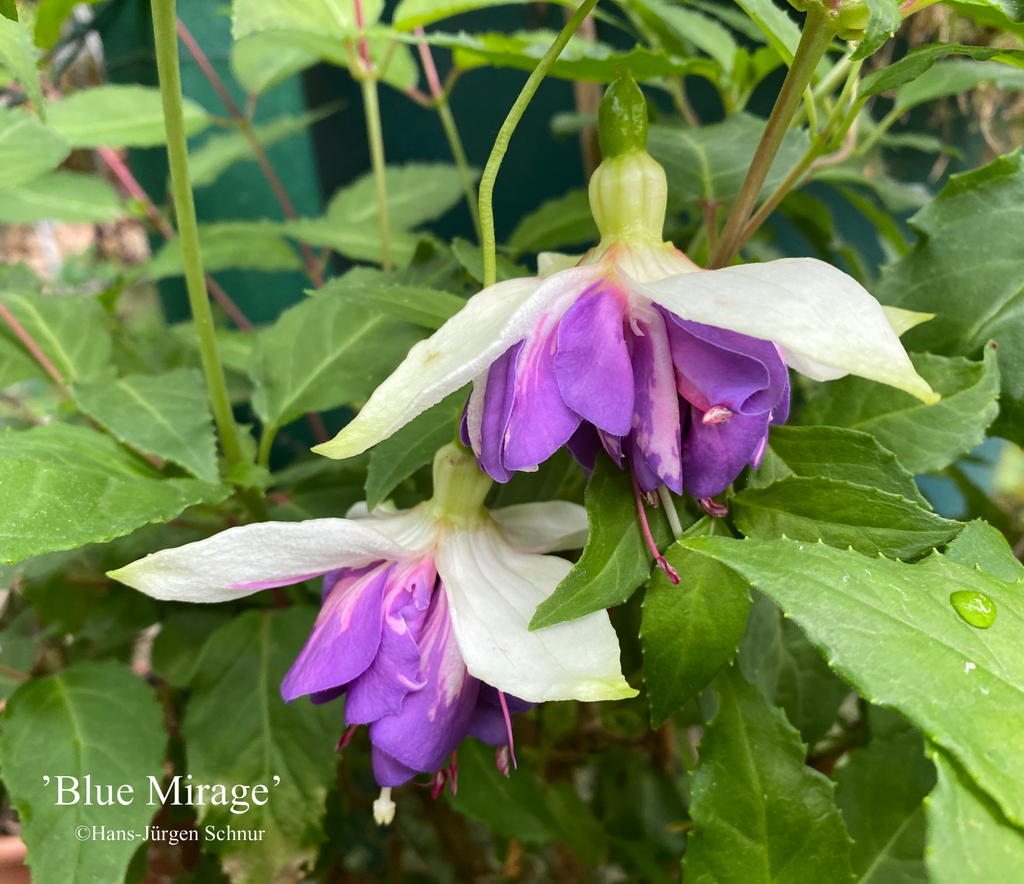 'Blue Mirage' ist ein Hänger mit großer Wuchskraft, so daß man auch größere Hochstämme davon ziehen kann. Sie sollte am Anfang mindestens einmal entspitzt werden, um die Blütenzahl zu verdoppeln. Die Pflanze sollte hell, aber nicht vollsonnig stehen. Der Wasser- und Düngerbedarf ist hoch. Sie blüht überschwenglich und legt dann eine Blühpaue ein. Auch die Folgeblüten erfolgen immer in Schüben. An heißen, trockenen Tagen ist mit "Rote Spinne"- Befall zu rechnen. Die Blüten selbst sind relativ groß. Wer diese Sorte einmal voll blühend gesehen hat, vergißt sie so schnell nicht.