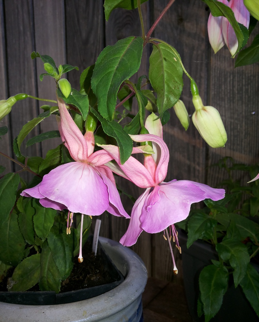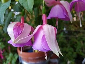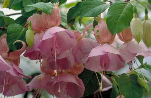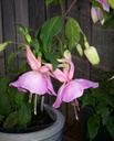 Caroline' gehört für mich zu den allerschönsten Fuchsien. Hätten alle Fuchsienfreunde bei der Eröffnung unseres Fuchsiengartens im Maximilian-Park in Hamm den phantastischen Hochstamm gesehen, den Hubert Emmerich gezogen hatte, ich könnte mir jedes weitere Wort ersparen. Soviel Schönheit darf natürlich einige Ansprüche stellen. Sorgfalt beim Gießen und nicht zu schnelles Umtopfen in größere Töpfe ist bei jungen Pflanzen unerlässlich. Ältere Pflanzen werden robuster. Eine gewisse Anfälligkeit gegen Botrytis, die wir ja gerade bei Fuchsien mit zarten Pastellfarben und dichtem Laub kennen, sollte vorbeugend durch Spritzen mit einschlägigen Mitteln behandelt werden, besonders auch bei der Einwinterung daran denken. Der große Blütenreichtum verlangt eine regelmäßige Düngung. Vernachlässigt man diesen Punkt, wird das Laub chlorotisch. Der Standort sollte immer hell und schattig sein. Fuchsien mit dieser besonderen, weitoffenen klassischen Glockenform gibt es nur wenige. Ein Beispiel, das nahe liegt, ist die "Mutter" 'Citation'. Wer diese wenigen aber wichtigen Punkte bei der Anzucht und Pflege von 'Caroline' beachtet, wird auch Erfolg mit ihr haben.