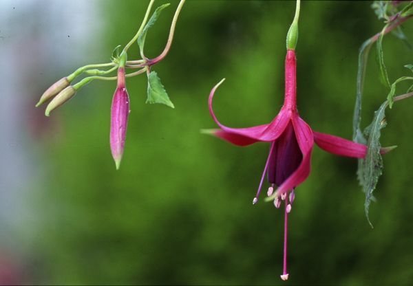 Mit 'Cat Balou',einer wunderschönen Ampelfuchsie,ist es unserem ostfriesischen Fuchsienzüchter Wilfried Springer erneut gelungen,das Fuchsiensortiment um eine ganz besondere unverwechselbare Sorte zu bereichern, noch dazu in dem bisher unterrepräsentierten roten Farbspektrum. Die "Neue" schmückt sich mit langen,eleganten,einfachen Blüten in einem einzigartigen warmen,ein wenig nach der braunen Seite tendierenden Rot von besonderer Intensität. Im Zusammenklang mit dem zierlichen hellgrünen Laub ergibt sich eine verhaltene Lebendigkeit,ein Gesamteindruck,der Ruhe und Harmonie ausstrahlt. Teilnehmer an der Jahreshauptversammlung 1991 in Dortmund,die die reichblühenden 'Cat Balou' - Ampeln in der Gärtnerei Heinke gesehen haben,waren begeistert. Besondere Kulturansprüche stellt die Pflanze nicht. Bei angemessener Pflege und Düngung wächst und blüht sie den ganzen Sommer hindurch. Stecklinge bewurzeln problemlos. Drei bis vier Jungpflanzen,während der Anzucht zweimal entspitzt,ergeben in einer 20-cm-Ampel eine üppige Wirkung. Weitere empfehlenswerte Springer-Züchtungen sind 'Caspar Hauser','Schöne Wilhelmine','Hölderlin','Gerda Manthey','Hathor','Thamara' und 'Abigail',um nur einige mir bekannte Sorten zu erwähnen.
