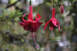 Sie hat recht große Blüten. Ein schönes Rot und die Korolle geht ins Lilarot. Durch ihren langen Tubus wirkt die Form sehr modern. Sie wird als stehend beschrieben, aber bei mir, wohl durch die schweren Blüten bedingt, ist sie eher halbhängend. Die Überwinterung ist völlig problemlos. Die Verzweigung spontan und ihre ersten Blüten erscheinen Anfang Juni.