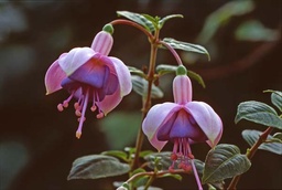 Diese Fuchsie,aus der "Werkstatt" unserer bewährten Fuchsienzüchterin Frau Dietrich,wurde bei der Fuchsienausstellung 2001 im Bot.Garten München von Frau Schnedl getauft. Die zartfarbigen Blüten,die sich allerdings relativ fest anfassen,haben schon manchen in Begeisterung versetzt,vor allem die besonder Farbe der Sepalen-Unterseite reizt mich immer wieder zum genauen Betrachten.
