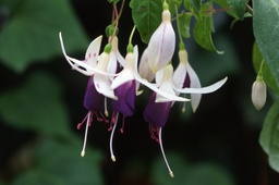 Kräftig und stabil aufrecht im Wuchs zeigt sich die 'Waldis Geisha' von Frau Dietrich. Ebenso auffällig ist die ungewöhnliche Farbe,eine Kombination aus Weiss (mit einem Hauch Rosa) und Aubergine. Die einfachen Blüten erscheinen mittelfrüh,zahlreich und sind gut freigestellt. Aus dieser Sorte lassen sich sehr schöne Büsche kultivieren.Quelle: Fuchsienkurier 3/2000
