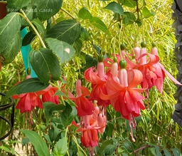 Paula Jane',vor fast 50 Jahren in England entstanden,konnte sich zu Recht einen Platz im Fuchsiensortiment erobern und diesen Platz auch behalten. Das ist mehr als man von vielen Neuzüchtungen der letzten Jahre behaupten kann. Viele Fuchsien kommen und sind bald wieder vom Markt verschwunden. Den Grund kann man nur vermuten. Wahrscheinlich liegt es an der großen Ähnlichkeit der "Neuen" mit altbewährten und altvertrauten Sorten,die häufig auch von größerer Vitalität sind. 'Paula Jane' wächst straff aufrecht und durch die gute Verzweigung gleichzeitig voll und buschig. Die zierlichen Blätter,blaugrün,zugespitzt an dünnen roten Stielen,füllen jede Lücke im Aufbau der Pflanze völlig aus. Es entsteht dadurch der Eindruck großer Üppigkeit. Die reiche Blüte setzt früh ein. Die Einzelblüten mit ihren fast dreieckigen,breiten,hochgestellten Sepalen und der leuchtend roten,leicht seitwärts gestellten Blütenkrone sind von klassischer Schönheit. Lange Blütenstiele verhelfen jeder Blüte zu einer guten Wirkung. Als Busch gezogen eignet die Pflanze sich gut zur Topf- oder auch Balkonkastenkultur, lässt sich aber auch an Plätzen mit gefiltertem Licht gut als Beetpflanze im Garten verwenden.