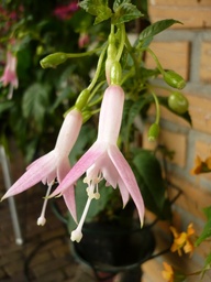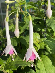 ’Jaspers White Pipes’ ist eine Triphylla mit weiß-rosa Blüten. Sie gehört zu einer ganzen Reihe ähnlicher Fuchsien,die der Züchter Hans van Aspert herausgebracht hat. Einige davon sind fast weiß,aber es sind auch rote und orangefarbige darunter. Sie sind auf jeden Fall alle wunderschön und einen Versuch wert.