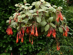 Die Triphylla-Hybride 'Dharlah' (De Cooker,2011) ist einekräftig,aufrecht wachsende Fuchsie,die sowohl alsBusch,Säule oder Hochstamm sich eignet. Sie hat unter anderem 'Göttingen' und 'OurTed' in seiner Abstammung. Die beste Farbe erhält man,wenn sie geschützt vor direkter Sonneneinstrahlung steht. Es gibt Hinweise darauf,dass 'Dharlah' einewinterhartee Fuchsie ist,und das wird in den kommenden Jahren weiter getestet. Wenn'Dharlah' sich als eine echte winterharte Sorte erweist,wird sie einenexzellentes Aussehen in einem leicht schattierten Randbereich bieten. Sie kann innerhalb weniger Monate bis zu 1,50m hoch wachsen. Übersetzung (leicht geändert) C.Denter