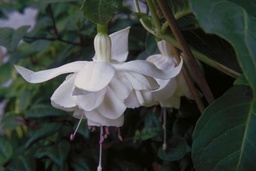 White Spider gehört zu den von Frau Gerda Manthey in ihrem Buch empfohlenen Ampelfuchsien,da sie starkwüchsig ist und ziemlich ausladend wächst.So ganz White ist diese Fuchsie allerdings nicht,da der Kelch sich rosa färbt auch wenn diese Pflanze im Schatten wächst. Wie viele andere Fuchsien auch,kommen die Blüten von White Spider an einem Hochstamm am besten zur Geltung. Wie viele weiße Fuchsien ein echter Hingucker. Die Stecklingsvermehrung macht wenig Probleme,vor allem,wenn die Stecklinge im Frühjahr gezogen werden.