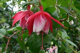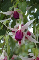 Dauerblühende pflegeleichte Sorte für den Halbschatten. Die Blüten hängen in Trauben an den Triebspitzen, was den Wuchs leicht überhängen lässt. Entnommen aus Fuchsienkurier 4-2019 "Meine Topp10"