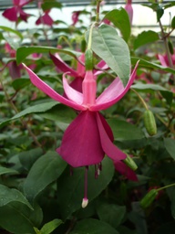 Cherry',eine Fuchsie von besonderer Schönheit,die man gerne besitzen möchte. Erstmals vorgestellt wurde sie vom Züchter Götz auf der Buga-Fuchsien-Hallenschau 1997 in Gelsenkirchen. Vor einem stattlichen Exemplar dieser Sorte standen immer wieder bewundernd Besucher dieser Ausstellung. Für diese schöne Fuchsie erhielt der Züchter vom Zentralverband Gartenbau die Goldmedaille. 'Cherry' ist eine tagneutrale Fuchsie,d. h.,sie blüht gleichermaßen im Kurz- wie im Langtag,also auch im Winterquartier,wenn die Temperatur mindestens +10°C beträgt. Entsprechend schwierig gestaltet sich daher die Bewurzelung und Anzucht eines Stecklings,da die Pflanze an den Triebspitzen stets neue Knospen und Blüten ausbildet. Es hilft oft nur ein radikaler Rückschnitt. 'Cherry' wächst straff aufrecht und verträgt weitestgehend Wärme und Sonne. Die Blüten stehen waagerecht ab und werden sichtbar über dem Laub getragen, sie überschütten förmlich die nicht sehr hoch werdende Pflanze. Eine gute Ernährung fördert den Blütenreichtum. Sie sollte als Jungpflanze auch mehrmals entspitzt werden. Empfindlich reagiert die Fuchsie jedoch auf Staunässe. Vorsicht mit der Gießkanne. Der nasse Sommer 2000 war dieser Sorte nicht gerade zuträglich. Man sollte sie auch nicht zu schnell in größere Töpfe umpflanzen. 'Cherry' heißt im Englischen: Kirsche,was wohl ein Hinweis auf die aparte kirschrote Blütenfarbe ist. Die Sorte ist vielseitig verwendbar. Sie eignet sich zur Beetbepflanzung ebenso wie zur Bepflanzung von Schalen und Balkonkästen. Als kleines Fußstämmchen macht sie großen Eindruck. Die Fuchsie 'Cherry' ist sortengeschützt,womit der Züchter aber nicht dem privaten Liebhaber untersagt hat,für seinen Bedarf einige Stecklinge aufzuziehen und auszupflanzen. (Siehe auch: Neue Deutsche Sorten,Cherry)