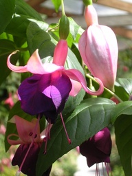 Diese schöne Fuchsie mit der attraktiven Farbgebung in Fliederfarbener Korolle und ihren roten, herausragenden Staubfäden, wächst etwas kompakt, verzweigt sich jedoch nicht so leicht. Entspitzen sollte zeitig geschehen, denn sonst setzt die Blütenbildung recht spät ein. Eine erfolgreiche dauerhafte Überwinterung ist mir bisher nicht gelungen. Stecklingsvermehrung am besten im späten Frühjahr.