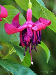 Diese Fuchsie bleibt relativ klein im Wuchs obwohl die Blätter erstaunlich groß werden. Die zierlichen Blüten, in einer besonders aparten Farbkombination, wirken sehr elegant. Die Fuchsie mag keine nassen Füße und gedeiht im Halbschatten besser als in der Sonne. Die Überwinterung in der Grube( wenn kein Gewächshaus vorhanden) ist vorteilhafter für das zierliche Gewächs. 'Botanischer Garten Berlin' widmete der Züchter Karl Strümper dem BOGA Berlin, der mit seinen 43 Hektar,20.000 Pflanzenarten und 16 Schaugewächshäuser, zu einen der größten seiner Art in der Welt gezählt wird.