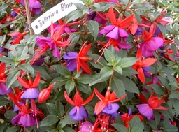 Diese Neuzüchtung erhielt auf der Bundesgartenschau in Frankfurt 1989 eine Goldmedaille. Damit begann eine beeindruckende Karriere von 'Ballerina Blau'. Sie war eine der ersten Fuchsiensorten die einen Züchterschutz erhielt. D.h.,bei gewerblich vermehrten Pflanzen muß eine Lizenzgebühr an den Züchter abgeführt werden. Lohn für den enormen Aufwand,den Neuzüchtungen mit Standards für den internationalen Markt erfordern. 'Ballerina Blau' erfüllte diese Standards,mit ihrem reinen mittelblau fans sie weltweite Verbreitung und wurde millionenfach vermehrt und verkauft. Überwiegend als Beetpflanze verwendet,ist sie auch für kleine und mittlere Kübel und Kästen geeignet. Während der Anzucht hat sie einen höheren Wärmebedarf. Bei zu engem Stand ist sie anfällig gegen Botrytis. Sie ist frühblühend und setzt wenig Samen an,wichtige Eigenschaften für den Massenanbau.