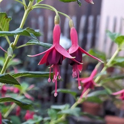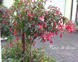 Florentina sah ich zum ersten Mal bewußt in dem Buch von Gertrud Dreyer "Mein Fuchsienbuch".Die besondere Farbe,Burgunderrot der Korollen dazu kontrastreiches Weiß der Sepalen....und dann die aufspringenden Sepalen. Perfekt!Sie steht bei mir auf der Terrasse im lichten Schatten. Das scheint ihr besonders gut zu bekommen. Die Blüten halten sehr lange und werden auch beim Abblühen nicht unansehlich. Der Blütenreichtum war im ersten Jahr nicht so üppig,aber laut Gertrud Dreyer soll es im zweiten Jahr reichlicher sein!