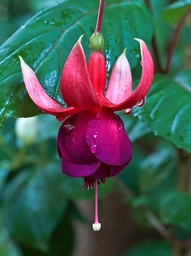 Über einen Zeitraum von mehr als 115 Jahren hat diese in Quedlinburg, genauer: im Bodethal im Harz, von der um die Jahrhundertwende berühmten Gärtnerei Sattler und Bethge gezüchtete Fuchsie bewiesen, was an Qualität in ihr steckt. Sie verzaubert noch heute mit ihrem Charme, der in der klassischen Blütenform mit der seltenen Farbkombination liegt, die Fuchsienfreunde. Einer einige Male entspitzten Pflanze in Buschform oder einem gut und sorgfältig gezogenen Fußstämmchen kann so leicht keine der großblumigen modernen Fuchsien die Schau stehlen. Der lackrote Kelch mit den zierlich nach oben gerollten Sepalen im gleichen Farbton ist von guter, fester Substanz. Die im Aufblühen fast schwarze Korolle zeigt an der Basis einige rote Adern. Das dunkle, graugrüne Laub bildet einen ruhigen Hintergrund für die mittelgroßen gut sichtbar an den Zweigenden stehenden Blüten. Weil die Proportionen von Wuchs, Laub und Blüte stimmen ,strahlt 'Gruß aus dem Bodethal' Harmonie aus. Wenn man bei soviel Schönheit noch die Robustheit der Pflanze in Betracht zieht, sie hat bei mir einige Jahre sogar die Winter im Freiland überlebt, allerdings an einem sehr geschützten Platz, was bleibt da noch zu wünschen übrig?