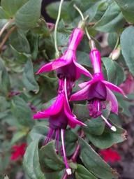 Eine zierlich wachsende Fuchsie mit großen,dekorativen glockenförmigen Blüten. Die Überwinterung ist etwas heikel,das sie sehr dünne Triebe hat und diese leicht austrocknen. Sie sollte zeitig entspitzt werden,denn sie braucht länger bis sie wieder zur Blüte kommt. Standort sollte halbschattig sein.