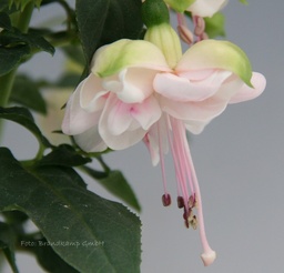 Diese Sorte ist eine reichblühende Hängefuchsie. Die Blüten sind relativ groß und schlank. Ein wahrer Dauerblüher. Innerhalb einer kurzer Zeit bildet sich eine große Ampel.