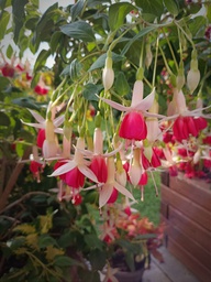 'Libelle' ist eine zartwachsende,reichblühende Fuchsie. Die pastelligen Farben unterstreichen diese Wirkung noch zusätzlich. Um einen schönen Bewuchs einer Ampel zu erhalten,sollten 3 Pflanzen in einem Topf gesetzt werden. Die Überwinterung ist relativ problemlos,jedoch sollte sie weder zu nass noch zu dunkel überwintert werden.