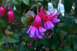 Die Fuchsie "Schilcherwein" wuchs bei mir erstmal gar nicht gut.Mit einem neuen Ableger angefangen,hatte ich innerhalb eines Jahres einen 150cm großen,kräftigen Baum. Ihre großen,dunkelgrünen Blätter sind etwas Besonderes. Ihre Verzweigung hat mich oft überrascht. Lange gelingt gar nichts und auf einmal hat sie sogar bis zu 6 Seitentriebe an einer Stelle gebracht. Im Frühjahr blüht sie sehr früh. Die Sommerhitze mag sie nicht so gern,da hängen die großen Blätter etwas schlapp. Ihre beste Zeit ist der Spätsommer. Die Menge und die kräftigen Farben der Blüten sind großartig.