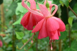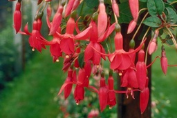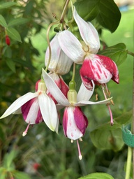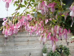 Eine hängende Sorte,die durch ihre orange-rosa Blüten ganz besonders bezaubernd wirkt. Sie macht sich sehr gut im Halbschatten,wodurch ihre Blütenfarbe richtig leuchtet. (entnommen aus Fuchsienkurier 1-2020: "meine Top 10")
