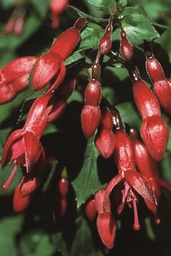 Einfarbig rote, gefüllt blühende Fuchsien wie diese gibt es nicht allzu viele, oder sind sie mir nur nicht bekannt? 'Santa Cruz' ist eine davon, die eigentlich nur Qualitäten aufzuweisen hat, so dass es mich eigentlich wundert, warum sie nicht populärer ist. Da ist zunächst die außergewöhnliche Wuchsfreudigkeit, die von einem robusten Wurzelsystem ausgeht. Die relativ großen, ovalen Blätter mit der glatten ,glänzenden Oberfläche, machen es Schädlingen schwer, sich einzunisten. Sie bedingen auch eine sehr gute Hitzebeständigkeit in der Sonne oder Schatten. Die schöngeformten mittelgroßen Blüten erscheinen in enormer Fülle pausenlos. Die Kultur ist einfach und Stecklinge bewurzeln problemlos zu jeder Jahreszeit. Bedenken müssen wir nur das starke Wuchsvermögen und entsprechend zügig in größere Töpfe pflanzen. Ob als Kübelpflanze oder frei ausgepflanzt im Garten ,'Santa Cruz' macht immer eine beeindruckende Schau. Hochstämme von enormen Ausmaßen und langer Lebensdauer sind schnell zu erreichen. In den milden Wintern der 70er Jahre hatte ich fünf Jahre hindurch eine Pflanze im Garten gelassen. Erst dem strengen Winter 78 ist sie zum Opfer gefallen.