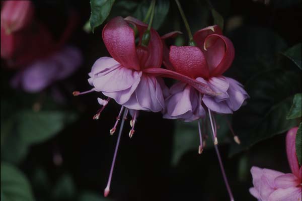 'Cecile' ist eine verhältnismäßig junge Sorte. Mit ihren gekräuselten,lavendelblauen,von der Basis her rosa bis rosaadrig dichtgefüllten,mittelgroßen Blüten ist sie eine hervorragende Fuchsie. Die tiefrosa Sepalen mit Lichtgrünen Spitzen sind hochgestellt und schließen den dicken,kurzen Tubus förmlich ein. Die Knospen wirken etwas klotzig,bunkig. Das mittelgrüne Laubwerk gibt dem Ganzen einen frischen,gesunden Eindruck. Mit dem gutverzweigten,überhängenden Wuchs ist sie sowohl als Ampelpflanze als auch zum Heranziehen eines Hochstammes gut geeignet. Sie liebt einen hellen,schattigen Standort. Quelle: Postillion 3/97 der SFV