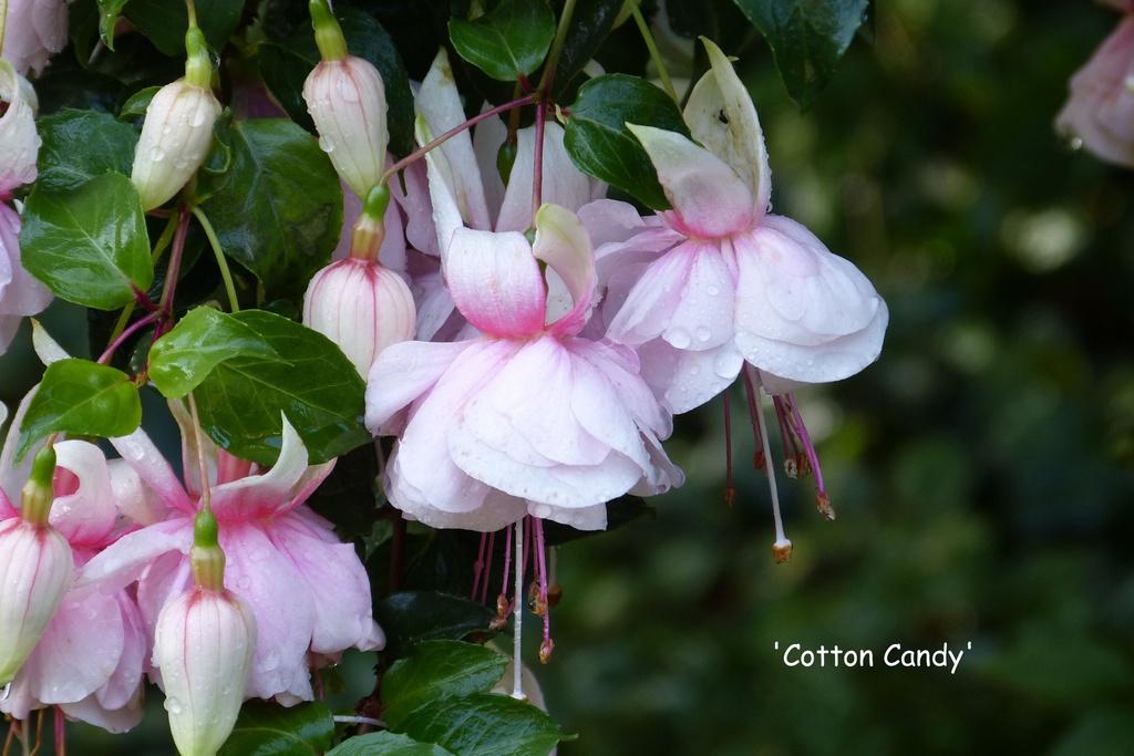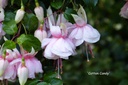 Wuchs überhängend bis hängend, Blüte gefüllt, mittelgroß Tubus: hellgrün, Sepalen: weiß - creme, Spitzen, Korolle: hellrosa, an der Basis lachs, liebt Halbschatten, reich blühend mit Unterbrechungen. (entnommen aus Kurier 3-2018,Top10 von W.Köhler)