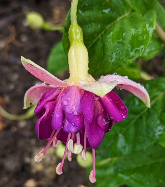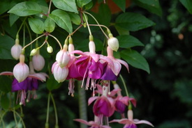 Es ist eine Züchtung von Yorke, GB, 1943. Sie wird als halbhängend oder überhängend beschrieben. Ich habe sie schon mehrere Jahre, und zwar als Ampelpflanze. Es ist eine außerordentlich dankbare Fuchsie. Ich brauche sie nicht sonderlich zu entspitzen, sie blüht sehr reich und das ohne Unterbrechung! Ihre hellen, kugeligen Knospen sind schon für sich ein herrlicher Kontrast zu dem schönen glatten, mittelgrünen Laub. Jedoch die Blüten, von einfach bis halbgefüllt, geben der Fuchsie ein Farbenspiel erster Güte! Sie gilt als winterhart in der Klimazone 6. Das ist der Minustemperaturenbereich von ~ -23° bis -18°. Falls sie ausgepflanzt werden sollte, so sollte man unbedingt ein etwas erhöhtes Beet o.ä. auswählen.