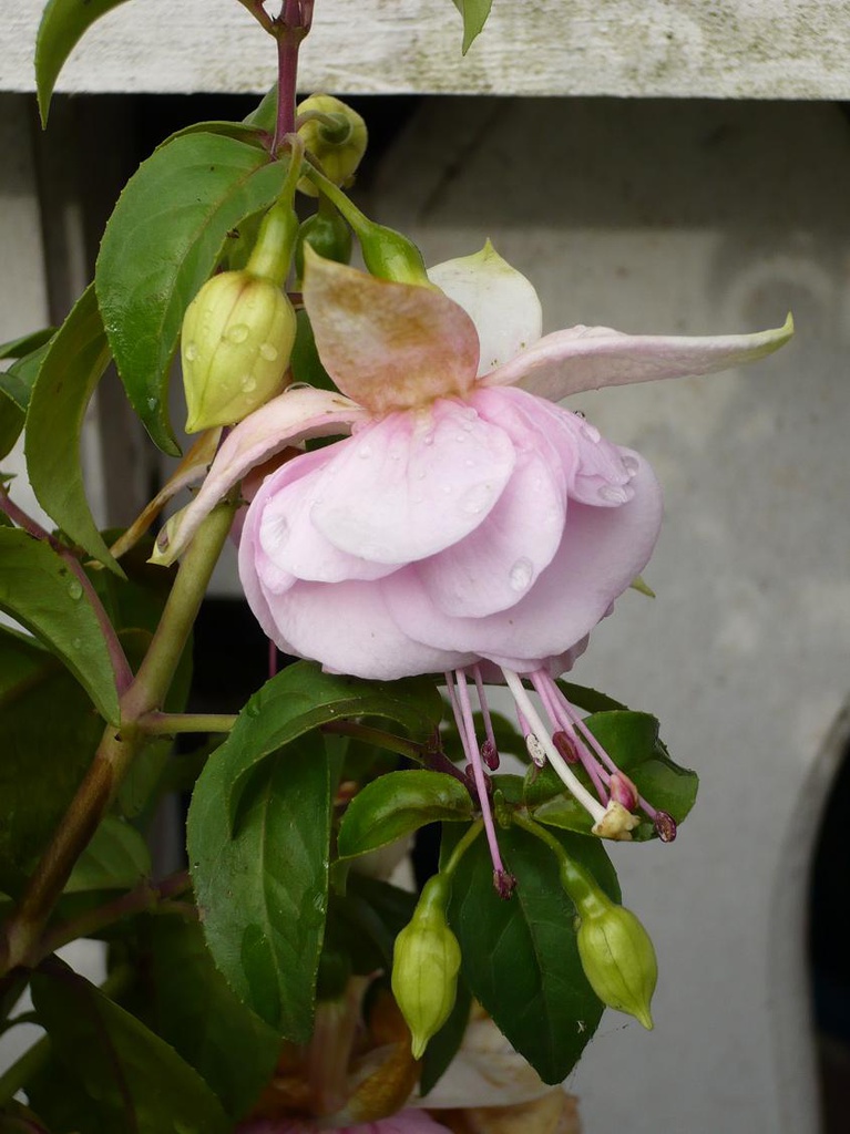 Spitzen mit leicht rosa Unterseite. Corolle blassrosa mit kleinen Petaloiden. Gefüllt, grossblumig, sehr