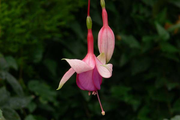 1994 (Checkerboard x Unbekannt) Röhre rot,Sepalen lang,weiß mit gelbgrünen Spitzen. Korolle hellviolett,einfach,großblumig,starkwachsend,aufrecht.
