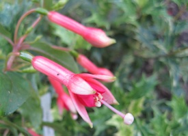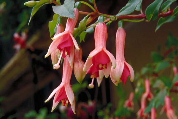 Diese Sorte hat einen so bezaubernden Namen,dass sie mir damals blütenlos in der Gärtnerei in den Einkaufswagen gehüpft ist. Im Wuchs ist sie eher zurückhaltend und sie ist auch eher was für geübte Fuchsianer. Sie braucht,um gut zu blühen,einen sonnigeren Platz. Mittagssonne bekommt ihr allerdings gar nicht,Morgensonne und nach Möglichkeit noch etwas Sonne in den Abendstunden ist ideal. Die Blüten haben ein tolles Lachsorange und stehen schön über dem Laub und haben in der Dämmerung eine intensive Leuchtkraft.'Herzilein' zu vermehren lässt auch so manchen Kenner verzweifeln. Stecklinge bewurzeln schwer und es ist teils sehr langwierig. Erfahrungsgemäß wachsen die jungen Pflanzen besser,wenn man bewurzelte Stecklinge pikiert und die Wurzeln dabei einkürzt. So verzweigen sich diese und die Pflanze hat später einen kräftigeren Wurzelballen.Diese Sorte kühl zu überwintern ist mir bisher nicht gelungen. Eine warme Überwinterung auf der Fensterbank klappt jedoch sehr gut.