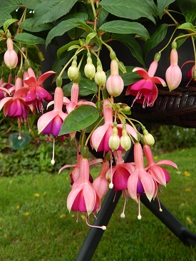 Eine reichblühende Fuchsie,die ohne Blühpause bleibt. Durch die Vielzahl der Blüten hängen die Zweige. Sie überwintert gut und ist insgesamt sehr pflegeleicht.