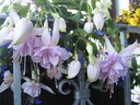 Hollys Beauty war in dem Sortiment einer Fuchsienversandgärtnerei aufgeführt,wir hatten uns hier mal das angebotene Sortiment bestellt,und da war Hollys Beauty darunter. Eine Fuchsienschönheit orchideengleich. Diese zarte Pastellfarben wirken auf jeden Fuchsienbetrachter,es gibt sicher einige Fuchsien,die fast die gleiche Farben aufweisen.Aber nun zur Sache,bevor ich weiter schwärme:Der Wuchs ist hängend,also eine Fuchsie für Ampeln geeignet. Auch hier mussten meine kleinen Astgabeln herhalten,die wunderschönen gefüllten Blüten sind schwer. Sie lässt sich auch als Busch im Topf ziehen,Wie so viele gefüllte Fuchsien braucht sie ihre aber eigentlich recht kurze- Blühpausen,um neue Blütenpracht aufzubauen.