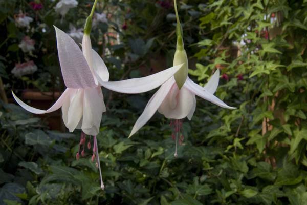 Irmgard Hirschfelder' ist eine kräftige und vital wachsende Fuchsie. Blühfreudig und sonnenverträglich,ob sie winterfest ist,sollte man testen. Ihr sattes grünes Blatt und die weißen Blüten,mit dem Hauch rosa. Sie ist eine auffallende Sorte. Die Fuchsie ist nicht nur als Hochstämmchen zu ziehen,auch in einer Ampel ein schöner Blickfang. Kräftig,vital und aufrecht ist auch die Namensgeberin durchs Leben gegangen. Die Ballett - Pädagogin Irmgard Hirschfelder hat Jahrzehnte jungen Menschen in Cuxhaven die Kunst des Balletttanzes,mit großer Begeisterung,vermittelt. Sie hat die Fuchsienwidmung auf ihren Namen noch mit großem Stolz getragen und gesagt,so werde ich immer da sein.