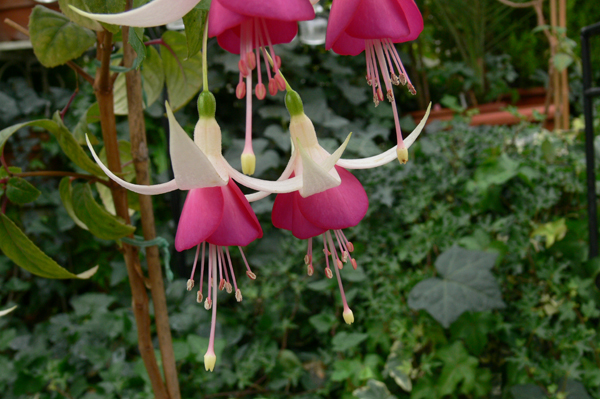 Joy Patmore' ist eine erstklassige Fuchsie mit vielen Vorzügen. Obwohl sie nicht ausgesprochen starkwüchsig ist, ein ausgewachsener Busch wird etwa 30 cm hoch, lässt sie sich doch problemlos in jede beliebige Form ziehen. Darum ist sie häufig - meistens als beeindruckender Hochstamm - auf Ausstellungen zu bewundern. Reich und üppig sprießen die wohlgeformten Blüten immer zu viert aus jeder Blattachsel. Sie sind in ihrer leuchtenden klaren Zweifarbigkeit mit der noch immer relativ seltenen "Kulihut"-Blütenform besonders auffällig und von guter Fernwirkung. Die durch die kurzen Internodien bedingte dichte Belaubung gibt den Blüten einen ruhigen Hintergrund. An den Standort stellt 'Joy Patmore' keine besonderen Ansprüche. Allerdings wird das ältere Holz mit den Jahren leicht brüchig. Ein windgeschützter Platz wäre also von Vorteil. Regelmäßige, ausgewogene Düngung ist, wie bei allen Fuchsien, unerlässlich. Sobald es durch Nährstoffmangel zu einem Wachstumsstillstand kommt, ist es mit der erwünschten Blütenpracht vorbei.
