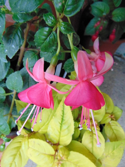 Diese Fuchsie fiel mir letztes Jahr in der Gärtnerei Blumen-Bechtel auf. Große kräftige Blüten mit einer enormen Leuchtkraft stachen regelrecht hervor. Der cremefarbene Tubus und der cremefarbene Stempel stehen in einem schönen Kontrast zu dem kräftigen Pink der Korolle. Die Blüten sind groß,einfach und doch sehr elegant. Das Laub ist sattgrün und sehr kräftig,und diese Sorte ist an und für sich auch sehr gut wüchsig. Ein halbschattiger Standort ist für ’Kleine Bühne Fichtelgebirge‘ am besten geeignet. Bei zu viel Sonne fängt sie das Kümmern an. Im Schatten wächst sie zu einem tollen Busch heran,blüht aber eher spärlich. Ich kann mir diese Fuchsie wunderbar als kleinen Hochstamm oder Pyramide vorstellen. Im Frühjahr sollten die Triebe 2-3-mal entspitzt werden,um einen schönen kompakten Wuchs zu erzielen. Von alleine macht sie es recht ungern. Stecklinge bewurzeln innerhalb weniger Tage recht schnell und auch die Überwinterung klappte absolut problemlos. Im Großen und Ganzen eine schöne und gelungene Fuchsie.