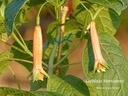 Dieses Orange-Grün wirkt sehr harmonisch zu dem heller grünen Laub. Sie wächst aufrecht,die orange-creme-grüne Blüte ist mittelgroß. Der Tubus ist seitlich etwas abgeflacht. Die Fuchsie ist für den sonnigen Standort geeignet. Insgesamt wächst die 'Lechlade Martianess' eher licht und locker.
