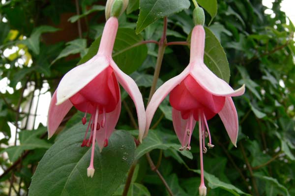 hellrosa mit grünen Spitzen, teilweise aufgebogen
