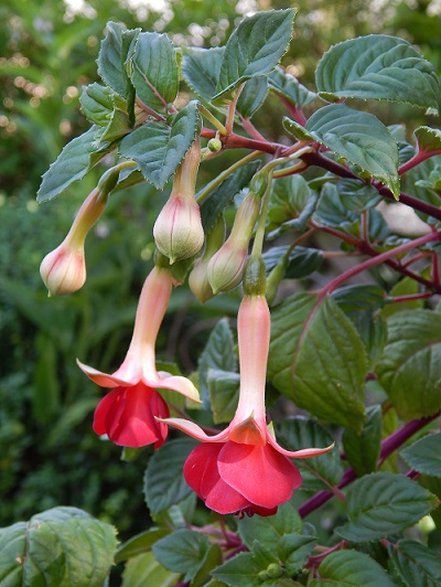 Eine besondere Fuchsie mit atemberaubender Farbgebung in einem kräftig leuchtenden Rot. Die langen Blüten erscheinen gebündelt an den kräftigen Trieben. Sie gilt zwar als aufrecht wachsend,aber durch die langen Triebe gelingt auch leicht eine schöne Ampel. Dazu sollten mindestens 3 Pflanzen in einen Topf.