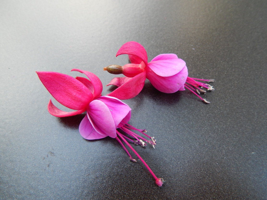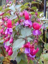 Es gibt sie noch, Fuchsien die mich einfach umhauen! Dazu gehört die recht neue Fuchsie 'Nora Sophie' aus dem Jahr 2016. Diese Fuchsie besticht einmal durch die frühe Blüte, die Form der Blüte und vor allem die interessante Farbkombination. Herr Burkhart, der Züchter, beschreibt diese bei Sepalen und Tubus mit rötlichlila, die Korolle hellbläulich violett, leicht geadert rötlichlila, lebhaftlila verblühend, Staubfäden dunkelrotlila, Stempel rötlichlila. Sie können erahnen was ich mit meinem Eingangssatz meinte?!In diesem Jahr habe ich sie das erste mal. Entspitzt hatte ich sie nicht,so dass sie etwas ausladend wächst. Die großen dunkelroten Blätter neigen zu Blattflecken. Der Züchter beschreibt sie als robuste Pflanze. Und als speziellen Hinweis: Nora Sophie ist ein Enkelkind von Alice Friede, sowohl in der realen Welt, als in der Fuchsienwelt. Eine Fuchsie die das Fuchsiensortiment im Farbenbereich erweitert!