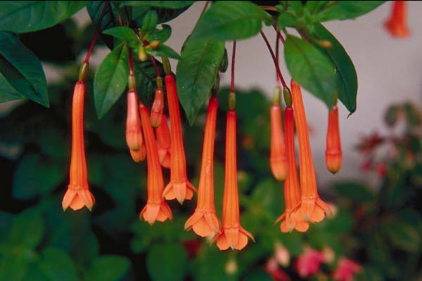 ‘Paul Berry‘ ist eine kräftig wachsende Fuchsie, die von Anfang an regelmässig entspitzt werden muss, da sie ansonsten sehr lange Triebe bildet und nicht so einfach in Form zu bringen ist. Ihre zahlreichen langen organge farbenen trompetenförmigen Blüten sind schon sehr auffallend. Stecklinge bewurzeln gut. Bei der Überwinterung hatte ich so einige Probleme und habe die Sorte schon mehrfach nachgekauft. Möglicherweise sollte man diese Sorte einfach mal durchkultivieren. Sie verträgt Sonne und belohnt alle Mühen mit vielen schönen Blüten, wenn man alles für einen guten Pflanzenaufbau unternimmt.