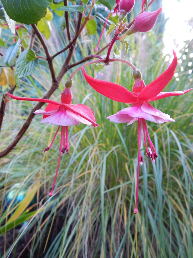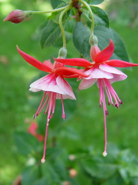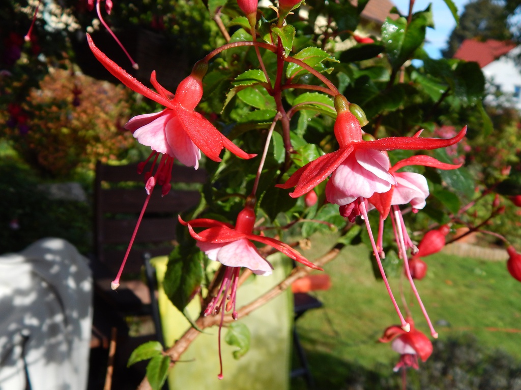 Geeignet als Strauch oder Säule in der vollen Sonne. Benannt ist diese Fuchsie nach einer Mitarbeiterin der Fuchsiengärtnerei C. Spek. 'Rianne Foks' zierte 2005 ein Jahr lang die Titelseite von Fuchsiana, der Zeitschrift der Niederländischen Fuchsienfreunde. Foto: Aat an WijkText aus Cultivarlijst des NKvFQuelle: Fuchsiana 1-2005